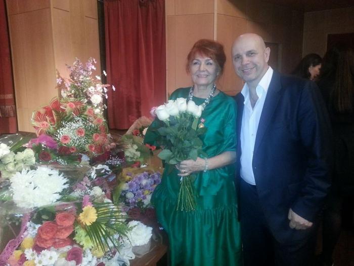 Владимир Соболь и Нина Генова, которая для юбилейного вечера предпочла платье насыщенного изумрудного цвета