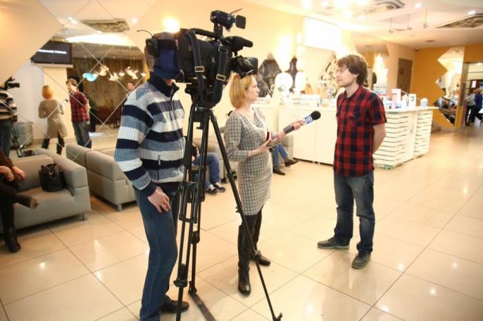 Корреспондентка телекомпании «Антенна-7» появилась в платье с принтом в корректную клетку.