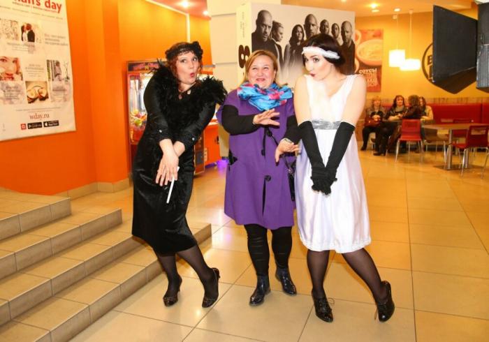Нельзя сказать, что это было непривлекательно, но несколько неожиданно точно. В центре на фото Светлана Терентьева, редактор журнала «Омская муза», который выпускается городским департаментом культуры. Она и ее спутница поддались раскованному настроению девушки-аниматора, которая участвовала в открытии 10 кинофестиваля «Любительское кино+profi».