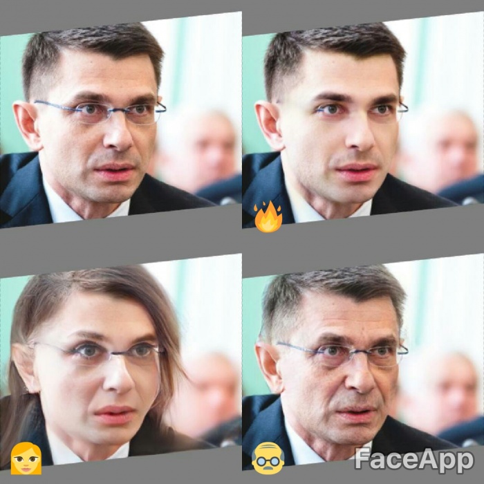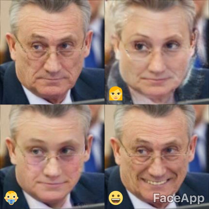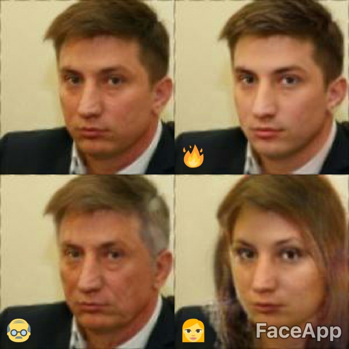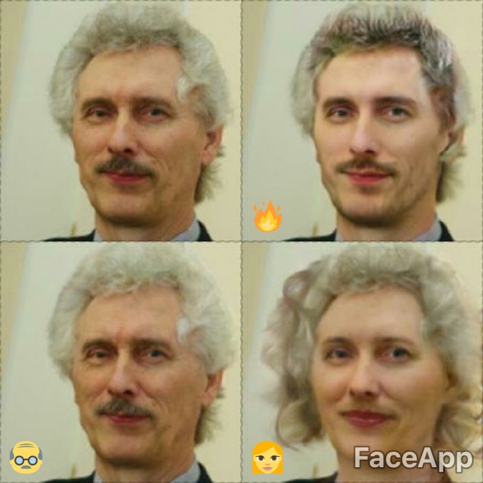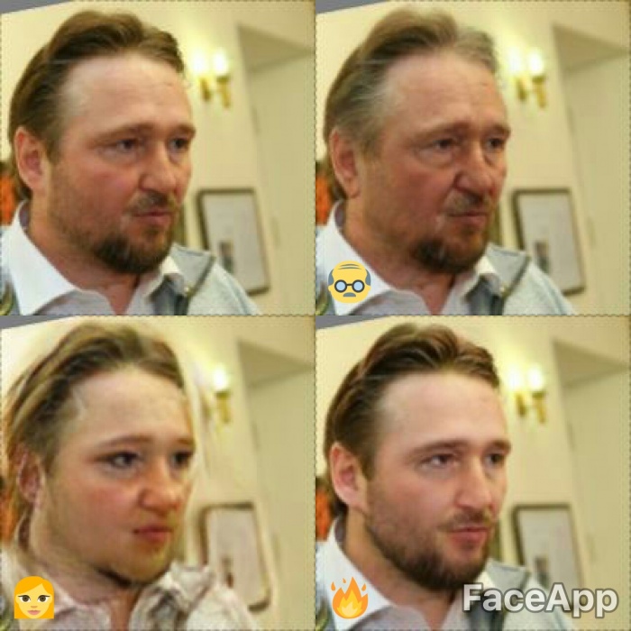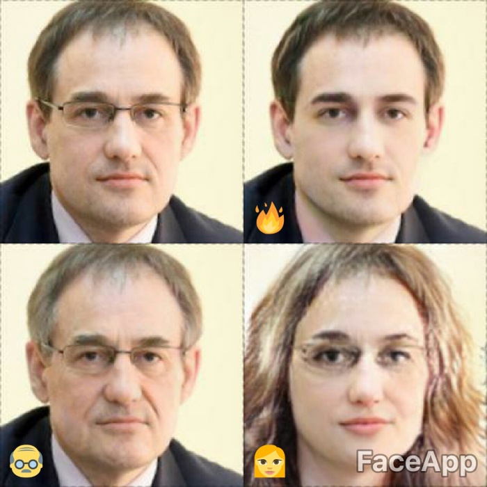 Для обработки фотографий использовалось приложении для смартфонов FaceApp, которое способно омолодить или состарить человека на фото, сделать его похожим на кинозвезду и даже поменять ему пол.