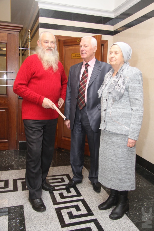 Священник Лев Степаненко с супругой и директором филармонии Василием Евстратенко