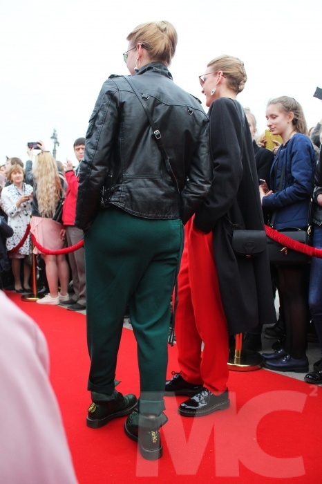 Сестры-режиссеры Дарья и Екатерина Носик выбрали массивную обувь. Ботинки популярной фирмы Dr. Marten's довольно изысканно смотрелись с залихватской кожаной курткой.