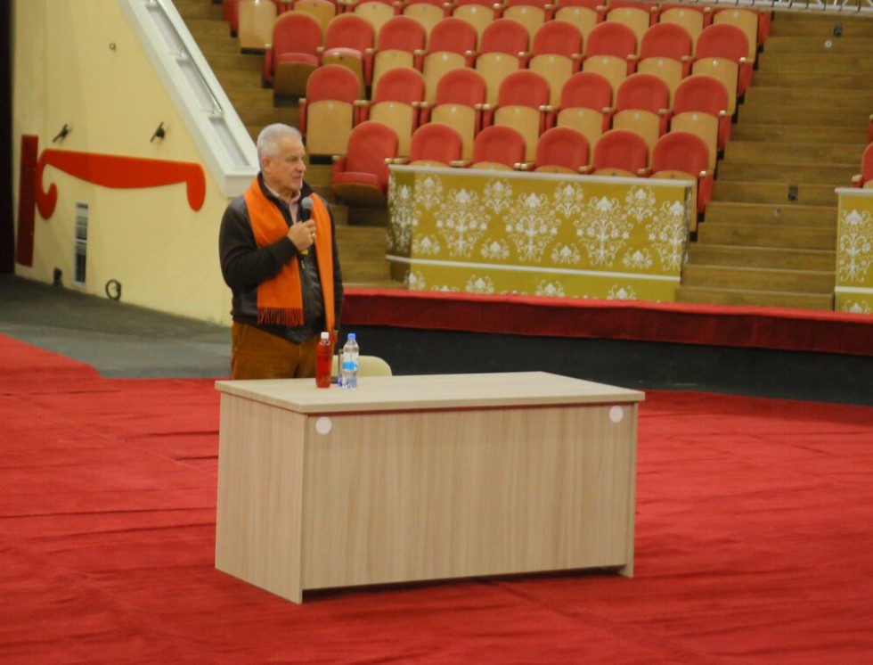 «Я очень тронут. Мне сказал уже директор, что это первый фильм в новом цирке. Для меня это очень интересный опыт. Полусфера, арена, почти колизей. Смотрится здорово, мне очень понравился этот опыт. И я за него очень благодарен. Он войдет в историю нашей студии. Вам спасибо большое и этому цирку процветания», – признался в недалеком прошлом дипломат.