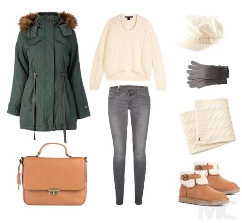 Парка - это тот вид верхней одежды, который отлично уживется с уггами, унтами, валенками, а также спортивными ботинками. Вместе они станут идеальной базой для прогулки в городе или за его чертой. Коричневые или рыжие угги, портфель или рюкзак - идеальная пара для куртки цвета хаки и других натуральных древесных оттенков. Если ваша парка серого или черного цвета, то шарф, перчатки и головной убор могут быть не нейтрального белого или бежевого, а смелого синего или глубокого фиолетового цвета.
