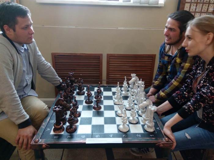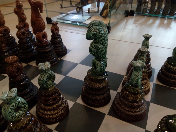 Есть в музейном зале и шахматы, не спрятанные в витрину, ими разрешают поиграть посетителям.