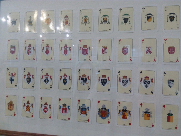 В этой авторской колоде 4 масти; буби – это французская имперская геральдика, пики – английская геральдика, черви – испанская и крести – католическая геральдика. Здесь то, что за щитом – реальные атрибуты геральдические. А то, что в щите, придумано мной», – рассказал Груздов.