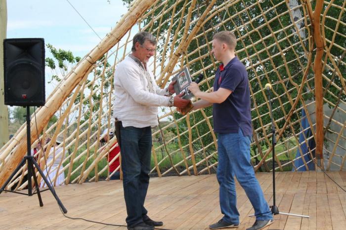 Поздравить основателя поселения Андрея Никитенко приехал директор музея им. М.А. Врубеля Юрий Трофимов. Он вручил ему подарок и пожелал не останавливаться на достигнутом. Но, до конца праздника Трофимов не остался, вероятно, даже в субботу времени у должностного лица не много.
