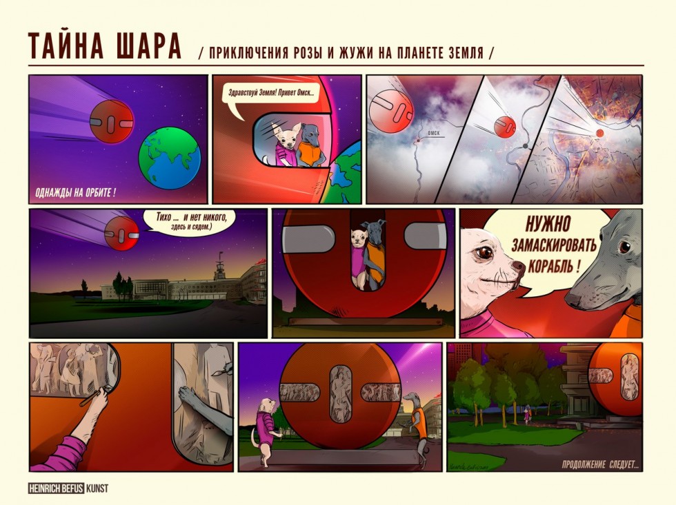 Омский художник Генрих Бефус показал свой новый проект, посвященный родному городу. Он представил, что шар на площади Бухгольца в Омске может иметь инопланетное происхождение и нарисовал об этом целый комикс. Первую страницу комикса художник опубликовал на своей странице в соцсети «ВКонтакте».