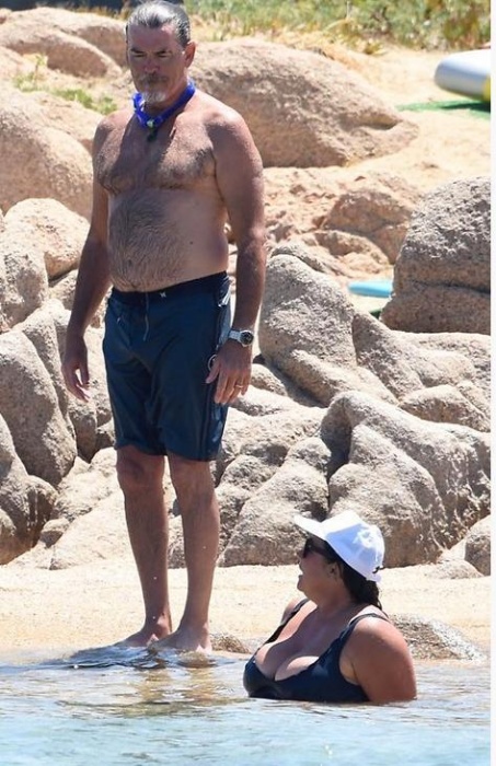 Фото, сделанные там, были опубликованы, в частности, на сайте dailymail.co.uk. Видно, что ни сам Пирс Броснан, ни его жена Кили Шэй Смит ничуть не стесняются фотографов. 53-летняя дама спокойно прогуливалась по берегу в купальнике, открывшем ее солидные формы, и плескалась в воде. 64-летний актер, напротив, выглядит очень спортивно и подтянуто.