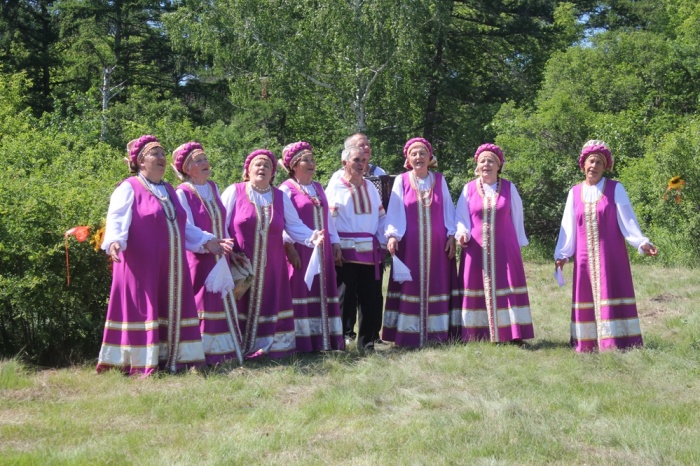 Заключительный этап проходил в городском парке. Прогулявшись по живописной березовой аллее, мы оказались на берегу озера Калач, где нас песнями под гармошку встретили артистки ансамбля «Радовесть».