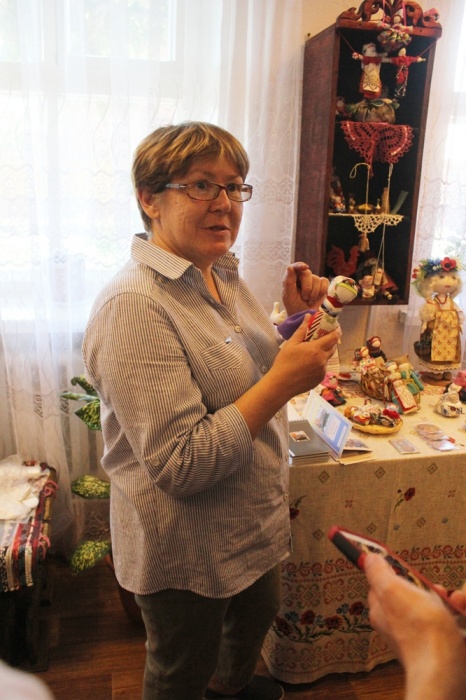 После обеда, который, кстати, проходил в старинной избе с русской печкой, нам рассказали об обережных куколках (их можно было купить), показали, как работает прялка с педалью, предложили приобрести домой калачи из печи.