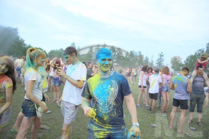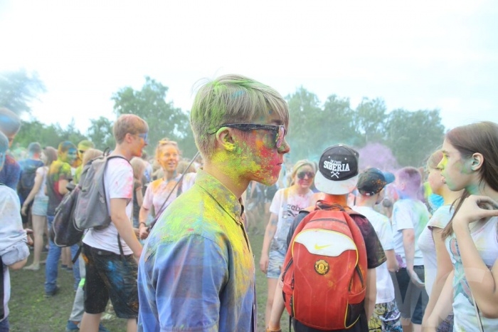 Но практика показывает, что достаточно просто появиться в толпе в чистой одежде, как найдется немало желающих исправить этот факт! Праздник Холи подразумевает еще и свободное общение, поэтому то, что на вас высыпал половину пакета желтой краски какой-то незнакомый человек - совершенно нормально. Омская молодежь в этом плане народ не стеснительный.