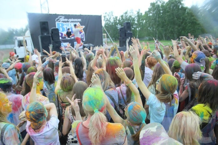 Традиционно на красочный праздник всех приглашают прийти в белых майках или футболках, чтобы последствия обсыпания, закидывания и намазывания цветного порошка были лучше видны.