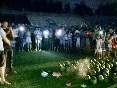 Как сообщает Lenta, недавно студент-инженер из Чжэнчжоу привлек внимание жителей тем, что начал раскладывать по одной из спортплощадок в студенческом городке большое количество арбузов. Увенчал сладкую инсталляцию торт с горящими свечами.