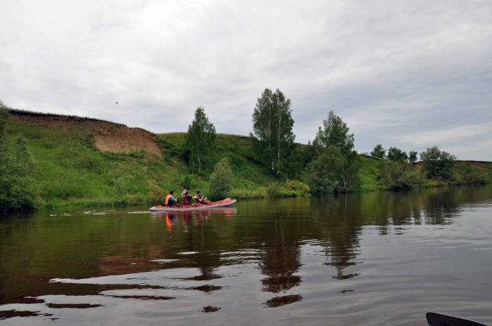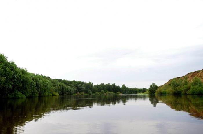 Чтобы легче и веселее было грести ритм, мы принялись петь песни. А иногда, в особенно живописных местах, мы «сушили весла», то есть, укладывали их на бортики, чтобы послушать тишину и полюбоваться видами правого высокого и глинистого берега, и левого – равнинного и зеленого.