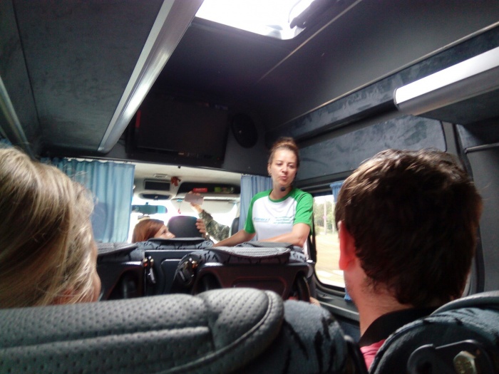 Каждому выдали спасжилет и весло. Затем инструктор Иван Батизат рассказал и показал, как правильно грести и распределил туристов по байдаркам. Тот, что сидит первым, задает ритм гребли всем остальным членам маленькой команды. У сидящего на корме тоже важная роль – он является рулевым.