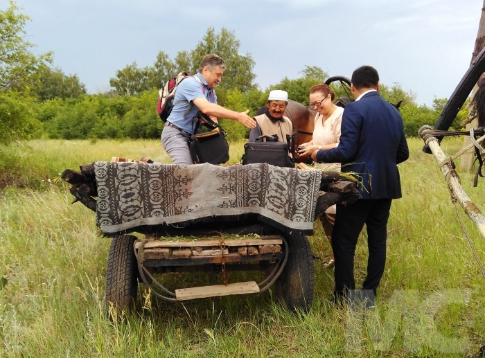 Приключения начались на станции «136 км», куда члены тестовой экскурсионной группы приехали на электричке. До аула прокатились с ветерком на телегах, запряженных лошадьми. В дороге удалось полюбоваться бескрайними просторами, взрастившими живущий здесь казахский народ, и посмотреть на остатки домов, некогда составлявших древнее поселение. В прошлом году Каразюк отметил 325-летие.