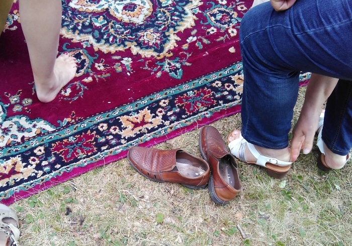 Перед входом в юрту нужно разуться. Входить в жилище следует с правой ноги. Мужчины и женщины располагаются по разные стороны юрты