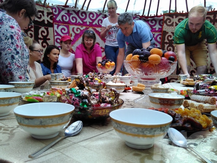 Далее перед туристами открылось несколько важных моментов. Во-первых, здесь чтят свои корни. Историю появления аула путешественникам открыли в юрте, где уже ждали накрытые к завтраку столы. За пиалой чая с молоком омичи узнали о легендарном предке жителей Каразюка Кошкарбай-батыре, попутно познакомившись с несколькими национальными блюдами. В их числе – курт (кисломолочные шарики); маленькие, но соблазнительные пирожки, и, конечно, баурсаки.
