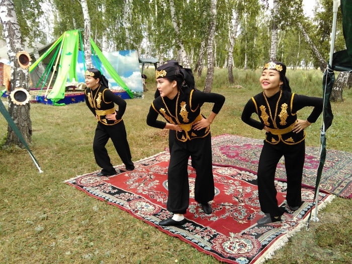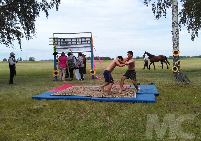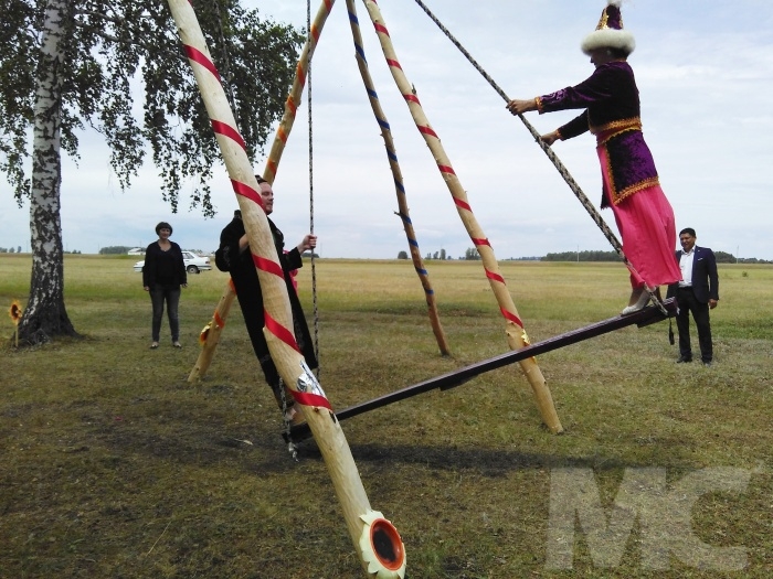Алтыбакан – качели для влюбленных. Качаясь, молодые поют друг другу песню. Как рассказали гостям, такие качели издавна собирали компании молодежи, которые, словно на вечеринке, проводили время, взмывая на них в небеса. Посмотрев, как качаются самые смелые, омичи отправились знакомиться с национальными развлечениями, среди которых – борьба, скачки, настольные игры.