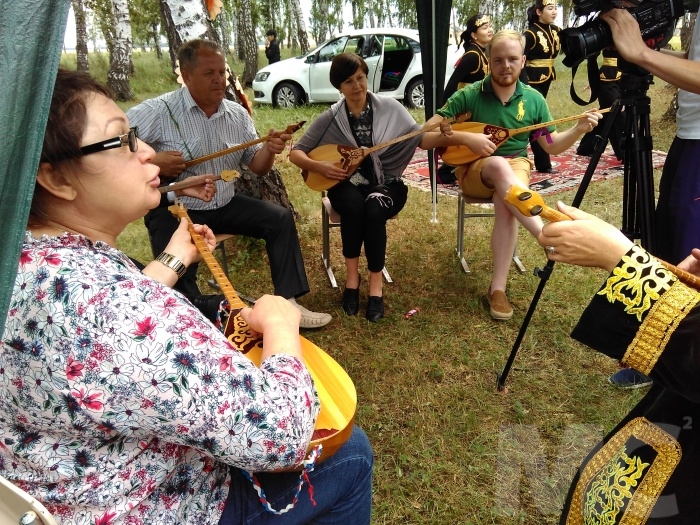 Закончив с творчеством, путешественники отправились на свадебный обряд, в котором они стали не просто зрителями, но полноценными участниками – родственниками, пришедшими поздравить молодых. После этого желающие смогли разучить несколько элементов национального танца «Кара жорга», который популярен на свадьбах. А туристам, умеющим играть на гитаре, предложили попробовать себя в роли домбристов.