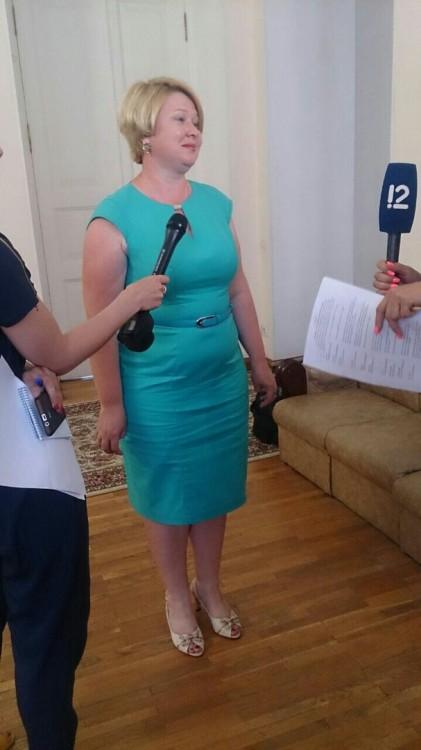 Оказалось, что деловой этикет не ограничивает звезд эфира в выборе цвета лака для ногтей. У г-жи Свидинской (по супругу Колесник) он неоново-розовый. Цвет, безусловно, весьма летний и модный, но несколько несерьезный для ее вида деятельности. Тем более, что и место съемок у г-жи Свидинской было более чем солидное – Горсовет.