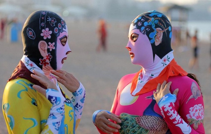 Чтобы достичь наилучшего антизагарного эффекта многие сочетают фейскини с купальными комбинезонами, полностью закрывающими тело. А это уже напоминает буркини – пляжный наряд для мусульманок.