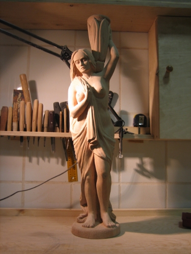 «Сапожник без сапог» - именно та поговорка, которой характеризует себя Корляков. Сделать что-то для себя и близких у резчика, что называется, руки не доходят, поэтому и сфотографировать удалось только «остатки». Виталий кривится - не хочет, чтобы фотограф снимал потемневшего от времени ангела. «Это же стыдоба, а не резьба», - говорит. Ангелу-хранителю не первый десяток, у него отломан крест и разбиты крылья. «Приклеить все времени нет», - оправдывается хозяин.