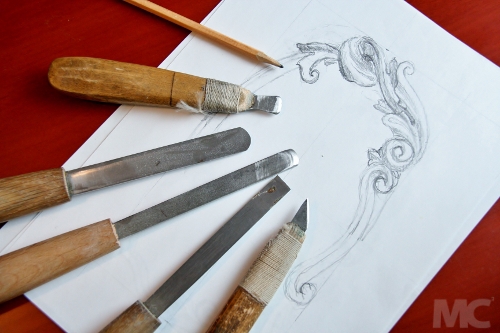 - Никакого специального инструмента в те годы не было, - рассказывает мастер. - Мы все делали сами. Помню, искал каленые инструменты — пилки, ножи, а потом приспосабливал их для резьбы. Учился тоже сам, пальцы резал. Да и по сей день случается. Меня всегда вдохновляли картины и лепнина времен Древней Греции, Рима. Сейчас больше тянет к славянской культуре — читаешь историю и понимаешь, насколько достоинства России притеснялись и унижались.
