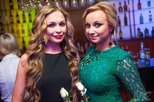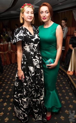 Яркое изумрудное платье с отделкой из тонкого кружева выбрала для выхода в свет Кристина Кромм (Balizza, на фото – с Ксений Энгель (слева)). Его главным акцентом стала россыпь камней, стилизованная под колье еще более насыщенного, чем само платье, зеленого оттенка. Собранные в прическу волосы девушки позволили заиграть длинным серьгам и открыли ее шею: очень удачное решение, если брать во внимание круглую, плотно прилегающую горловину наряда.