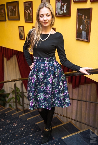 Массивное ожерелье черного цвета и очень похожее на это украшение жабо мы заметили сразу у двух девушек на «Миссис Омск-2013». Одной из них оказалась стилист Анастасия Миненко (Pafos, на фото внизу справа), пришедшая в «Гранд-Летур» поболеть за свою лучшую подругу и коллегу Юлию Межеричер. Помимо яркого аксессуара, притягивающего взгляды окружающих, Анастасию выделял среди прочих созданный ею тандем из юбки и рубашки в модную в этом сезоне клетку. Сочетание двух цветовых решений одного и того же принта могло сыграть злую шутку с любым, кто отважится на такой эксперимент, но чувство меры и вкус не подвели нашу героиню.