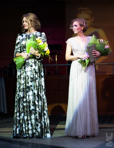 Платье «Миссис Омск-2012» Юлии Дьяченко (на фото с «Миссис Омск-2010» Светланой Малаевой) хоть и не отличалось оригинальностью фасона, зато выигрывало за счет принта и, кстати, очень шло своей обладательнице.