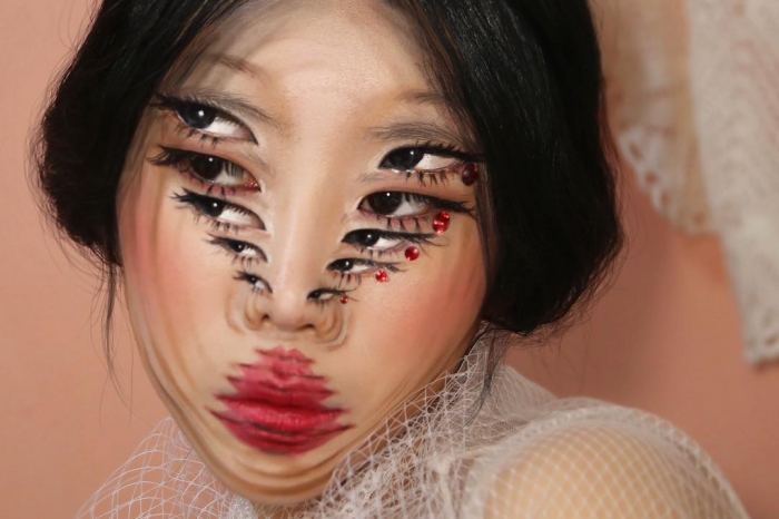 В последней работе Дейн нарисовала себе 4 дополнительных пары глаз и несколько ртов. Темными и светлыми разводами на коже она добилась эффекта складок. Интересно, что в таком необычном образе она показалась себе похожей на русскую матрешку.