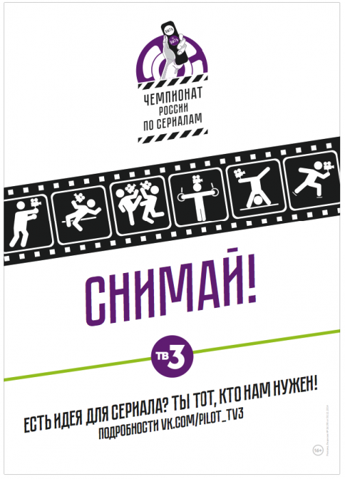 Попади в кино через хэштег! Телеканал ТВ-3 и социальная сеть «ВКонтакте» продолжают революционный телепроект «Быть или не быть-2. Чемпионат России по сериалам», который предлагает телезрителям наиболее короткий путь для реализации их идеи в телеэфире. Чтобы снять свой сериал, больше не нужны связи, диплом киношколы, дорогая профессиональная техника и богатые родители, не нужно залезать в кредиты и переезжать в Москву! Нужен только талант, свежий взгляд, наличие классной концепции и аккаунта «ВКонтакте». Принять участие в проекте сможет любой желающий: для этого достаточно выложить на свою страницу «ВКонтакте» с хэштегом #Снимупилот авторский видеоматериал любой протяженности и в любом качестве. Участвовать может как один человек, так и целая команда создателей.