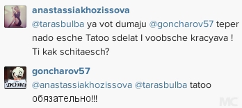 Одна из девушек предложила Гончарову сделать татуировку. Ответ не заставил себя долго ждать.