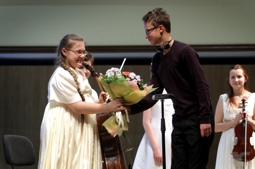 Исполнение попурри Настей Ушаковой публикой, присутствовавшей на концерте, было принято на «ура». Артистке презентовали множество цветов, как будто она сыграла серьезное произведение, а не «солянку» из детских мелодий. Кстати, многие пришли с детьми, учащимися музыкальных школ. Например, программный директор «Европы+» Татьяна Криницына была с дочкой.