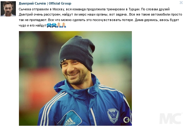 В момент угона автомобиля Сычев находился на сборах со своей командой в Турции.