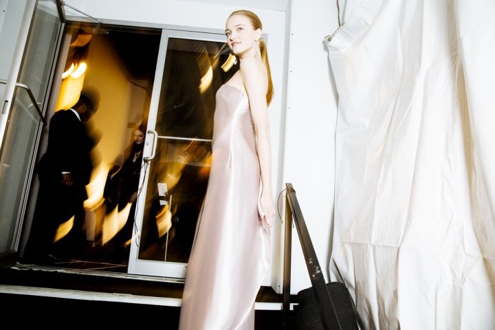 Сама коллекция Ralph Lauren получилась необычайно женственной и элегантной. Были представлены двубортные костюмы классического кроя, белоснежные свитера с высоким горлом, меховые накидки и шелковые бледно-розовые блузки, изящные платья из тончайшего шелка, расшитые стразами. Кульминацией шоу стал выход моделей в платьях-бюстье из тончайшего шелка. Тогда на подиуме и появилась Влада Рослякова, облаченная в одно из таких платьев.