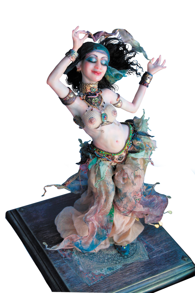 Эта кукла создавалась в один из романтичных периодов моей жизни. Здесь мне хотелось показать женщину в состоянии влюбленности, у которой всегда «закрыты глаза». Ведь главное сокровище – внутри: в глубоких переживаниях радости, эйфории, экстаза танца. В «Танцующей» смешиваются и ее страстность – у нее открыта грудь, и романтичность, на что указывают воздушные голубые одежды.