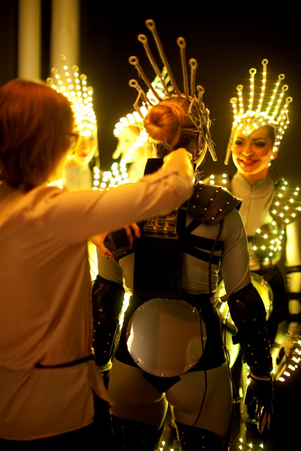 От технических неполадок на 100% застраховаться невозможно, но это не должно касаться клиетов. У меня всегда с собой паяльник. Нам не нужно особых условий. Когда меня спрашивают: «Какой у вас райдер?», отвечаю: «Нам нужно место, где мы можем переодеться, максимально выключить свет, чтобы все проверить, и обязательно должна быть розетка».