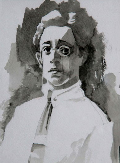 Это зарисовка ко дню рождения моего папы (Игорь Санин, известный омский акварелист, заслуженный художник РФ – ред.). Он любит север, часто пишет его, а кроме того родился в ноябре, когда в Омске уже обычно холодно и снежно. Эти ассоциации слились в одном нестандартном портрете. С ним бы еще поработать, «утрясти» по композиции, по пятнам, и выражение лица слегка изменить – я бы добавила веселья, но жизнь идет дальше, и рождается много чего другого.