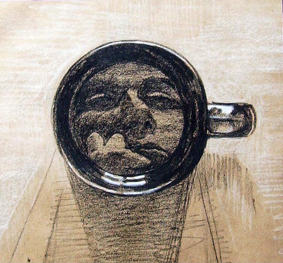 Помню, я сидела на кухне утром, просыпалась, пила кофе, смотрела в чашку... Тут меня спрашивают: «Ну, и что там показывают?» Я и нарисовала. Вообще, многие работы возникают спонтанно, но очень часто у меня не хватает времени на проработку, переделывание. Ничего не могу с собой поделать – мне лучше не дорисовать, чем все сделать грамотно, но уже потеряв интерес. В идеале – совместить технику с полетом, но для этого нужно заниматься только одним делом в жизни, посвятить себя ему. Я так не могу.