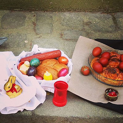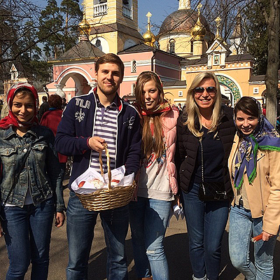 Дочь Валентина Юдашкина Галина с мамой Мариной и бойфрендом Петром Максаковым также как и многие звезды в воскресенье отправились на службу, заодно захватив с собой корзину с куличами и яйцами.