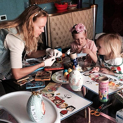 Певица Наталья Ионова-Чистякова, известная как Глюкоза, провела своим маленьким дочерям мастер-класс по изготовлению декора для яиц.