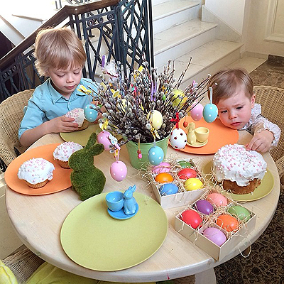 А модель и супруга российского олигарха Александра Лебедева Елена Перминова, на днях ставшая мамой в третий раз, запечатлила крайне трогательный момент, на котором двое ее старших сыновей пробуют пасхальные лакомства.