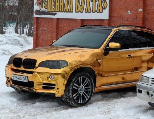 В прошлом году автолюбители и многие пешеходы заглядывались на «золотой» BMW, который своим сиянием затмевал серые краски нашего города. Немногие решаются заклеить свой автомобиль матовой пленкой, а уж такой насыщенно-яркой — тем более. Однако для владельцев BMW стандарты, видимо, не приемлемы.