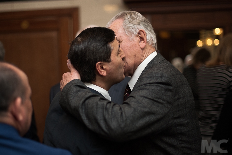 Выйдя из комнаты, заместитель Назарова первым делом подошел поздороваться с бывшим председателем госстатистики, экс-депутатом Государственной Думы Иваном Викторовым. Гамбург не только долго жал руку соратнику Сергея Бабурина, но и наградил последнего пламенным поцелуем в щеку.