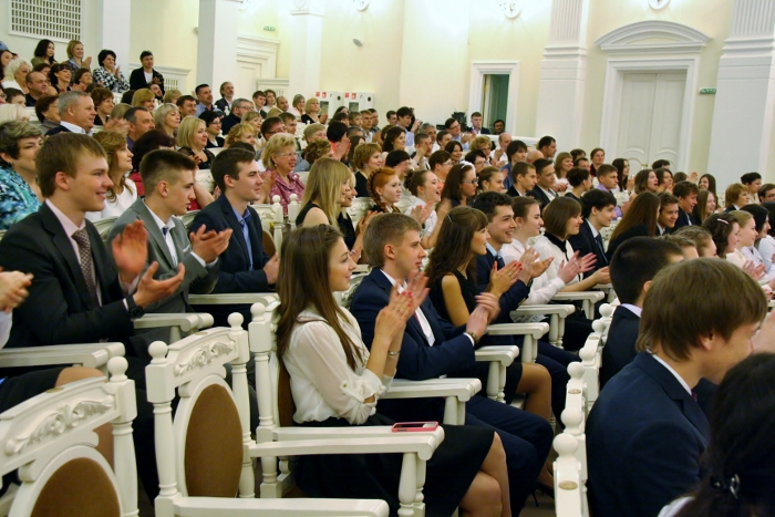 В отличие от гимназии №75, о которой мы писали ранее, на последний звонок 115-й школы никто из высокопоставленных или известных лиц не пришел. Торжественное мероприятие проходило в стенах Органного зала, а не самой школы, как это обычно бывает.