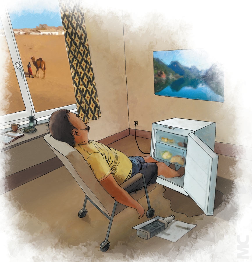 Как-то узнав о желании трудящихся госпиталя перенять у меня опыт отечественной медицины, приятель-кениец, доктор Мартин, попросил прочесть курс по обморожениям. В поисках способа пояснить, что такое «много снега» и «минус тридцать», я несколько растерялся. Как можно обморозить стопы в Сахаре? Конечно, изредка там выпадает жалкое подобие снега и ночами бывает холодно, но чтобы обморожение... На помощь пришел опытный русский товарищ, в прошлом военный наблюдатель. Он рассказал о случае с норвежцем, который в пустыне ужасно заскучал по заснеженной родине, ибо служил в самом африканском пекле. Когда тоска стала невыносимой, он, приняв убойную порцию «Джека Дэниэлса», открыл холодильник, перевернул его морозилкой вниз и положил туда ноги. Затем от внезапно накатившей радости уснул. Наутро кенийские специалисты впервые в жизни наблюдали образцовую картину обморожения нижних конечностей. И искренне не верили, что где-то такая беда случается чаще, чем раз в сто лет.