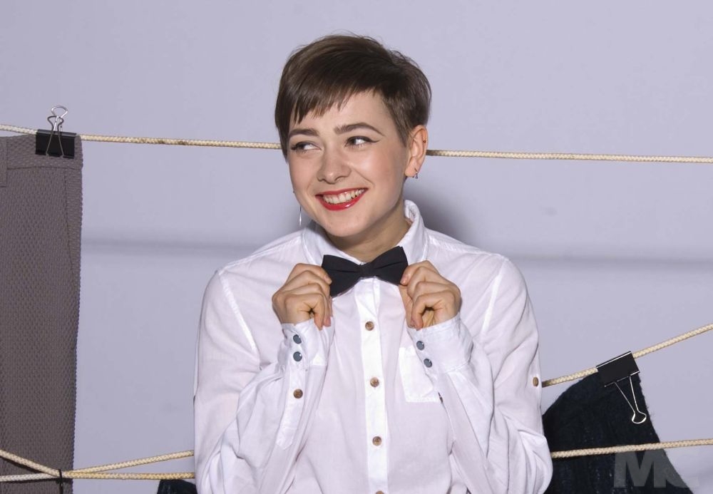 Впорхнувшую в нашу фотостудию героиню легко принять за первокурсницу: яркое зеленое пальто, огромные блестящие глаза и задорно взлохмаченные, как у подростка, волосы. Но первое впечатление обманчиво – за плечами у молодой девушки уже почти три высших образования, неоднократные победы в различных национальных конкурсах дизайна одежды и работа в известнейших домах моды России.